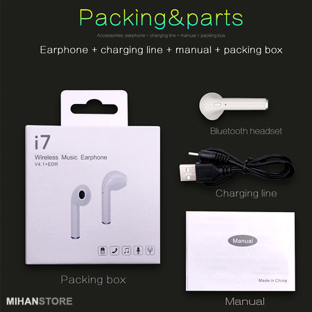 هندزفری طرح اپل مدل HBQ I7 یک هندزفری ظریف و بسیار زیباست که داخل گوش قرار گرفته و به صورت تکی عرضه می گردد. این دستگاه بی سیم از طریق بلوتوث نسخه 4 به دستگاه هوشمند شما وصل می شود و یکی از نقاط قوت آن این است که می تواند به طور همزمان به دو دستگاه وصل شود. با این ایرفون بی سیم میتوانید به تماس های تلفنی خود پاسخ داده و به راحتی موزیک پخش نمایید.از دیگر خصوصیات آن می توان به سیستم کاهش نویز، میکروفن داخلی، وزن کم و زیبایی اشاره کرد.باتری لیتیوم پلیمری آن در حدود 80 دقیقه شارژ کامل شده و امکان مکالمه و پخش موزیک را برای شما فراهم می کند.