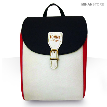 کوله پشتی TOMMY HILFIGER بسیار زیبا، با اندازه ی متوسط و دارای طراحی خاص می باشد. روی کیف با یک گیره طلایی رنگ تزئین شده است. یک زیپ پشت کیف قرار دارد که مناسب قرار دادن کارت های اعتباری و وسایل کم حجم مشابه می باشد. دارای یک بخش اصلی می باشد که با استفاده از زیپ یک طرفه باز و بسته می شود. در داخل و پشت کیف دو عدد جیب زیپ دار قرار دارد. داخل کیف با آستر طرح دار دوخته شده است. دارای دو بند دوشی و یک بند کوچک دستی می باشد. بندهای دوشی در بلندترین حالت خود دارای 100 سانتی متر ارتفاع می باشد که می توانید به دلخواه اندازه ی آن را تغییر دهید. استایل کار نیمه رسمی و مناسب برای استفاده روزانه و مهمانی های دوستانه می باشد. ویژگی برتر این محصول کیفیت فوق العاده آن می باشد.