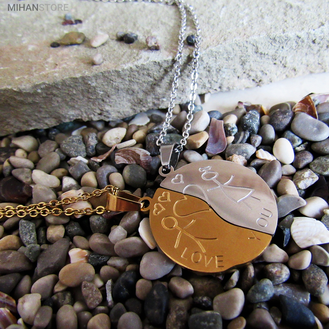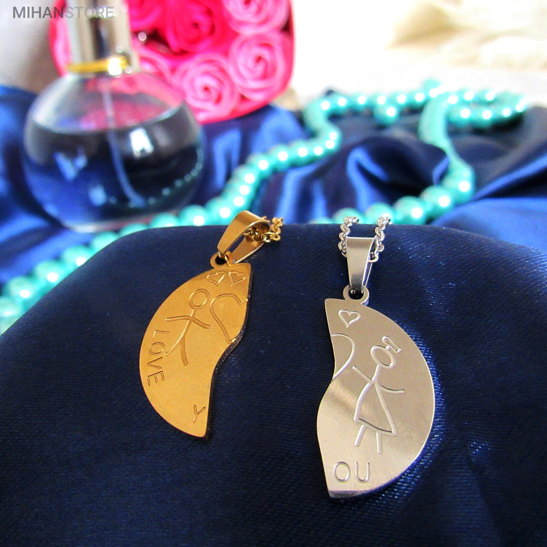 ست گردنبند عاشقانه Boy and Girl استیل رنگ ثابت و ضد حساسیت که از یک پلاک دختر نقره ای و یک پلاک پسر طلایی تشکیل شده است و می تواند هدیه ای زیبا برای روز تولد و روز ولینتاین و… باشد. این مجموعه گردنبند زنانه و مردانه از جنس استیل Stainless Steel بوده و کلمه ی LOVE YOU به معنای "دوستت دارم" با زیبایی و ظرافت بر روی آن ها حک شده است. این زیور به دلیل ابعاد ظریف و طراحی ساده و زیبایی که دارد براحتی مورد قبول سلیقه های خاص قرار میگیرد. هر گردنبند این مجموعه گرد کوچک دارای ابعاد 30 میلی متر است و طول زنجیر این آویز 44 سانتی متر می باشد. استفاده از مواد اولیه ی با کیفیت، ظرافت در طراحی و همچنین استفاده از واژه ی "دوستت دارم" این مجموعه را به انتخاب مناسبی برای عشاقی که می خواهند یادگاری ای برای عشق جاودانه ی خود داشته باشند، تبدیل کرده است. همچنین زیبایی و خاص بودن این محصول یک هدیه ی مناسب و جالب برای سالگرد ازدواج و یا هر مناسبت مشابه دیگر میباشد.