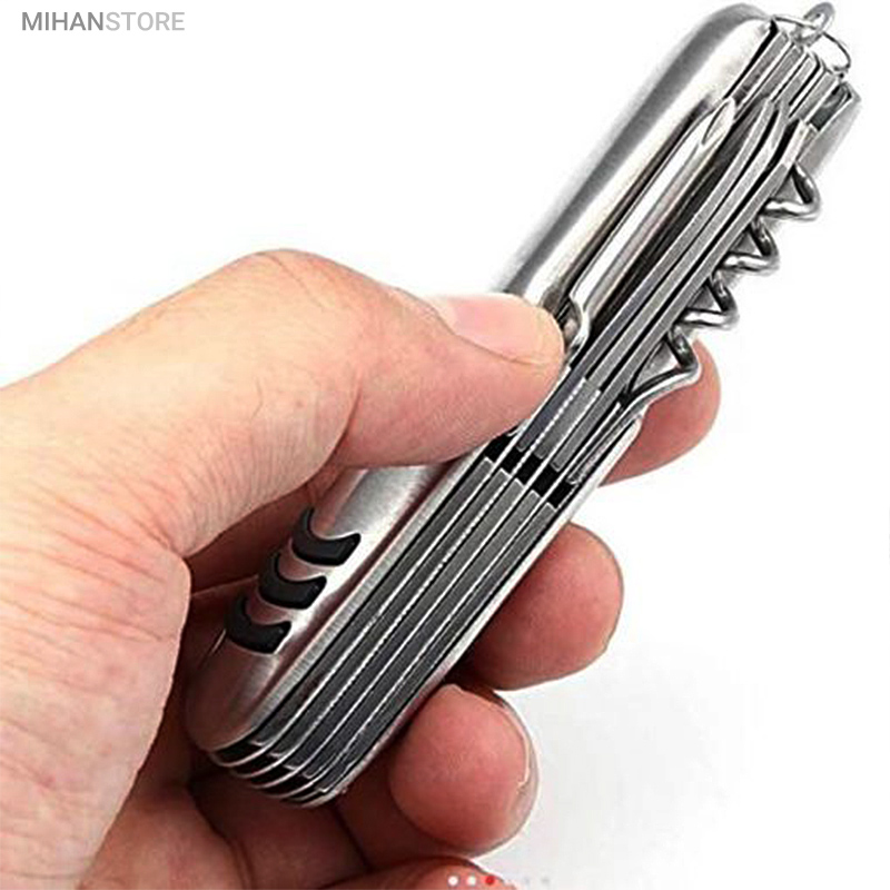 - ابزار 11 کاره شامل چاقو ، قیچی ، پیچ گوشتی ، درب باز کن ، انبر دستی ، چاقو اره ای و ...