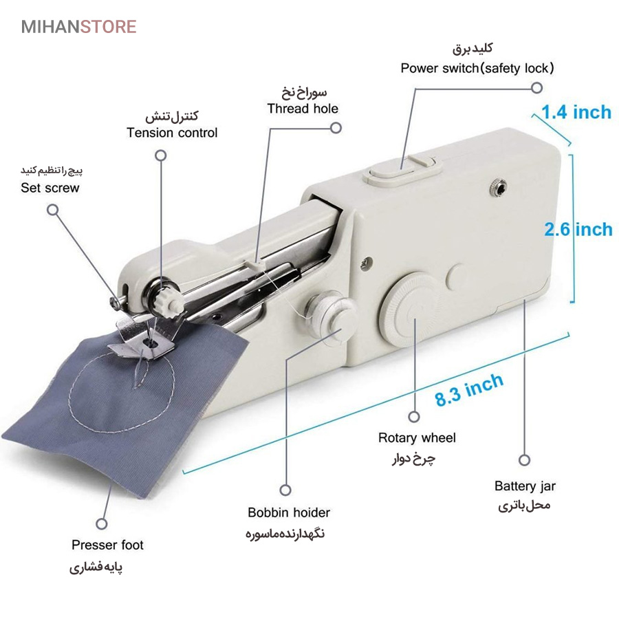 - همراه 2عدد ماسوره ، نخ ، سوزن یدک ، بشکاف