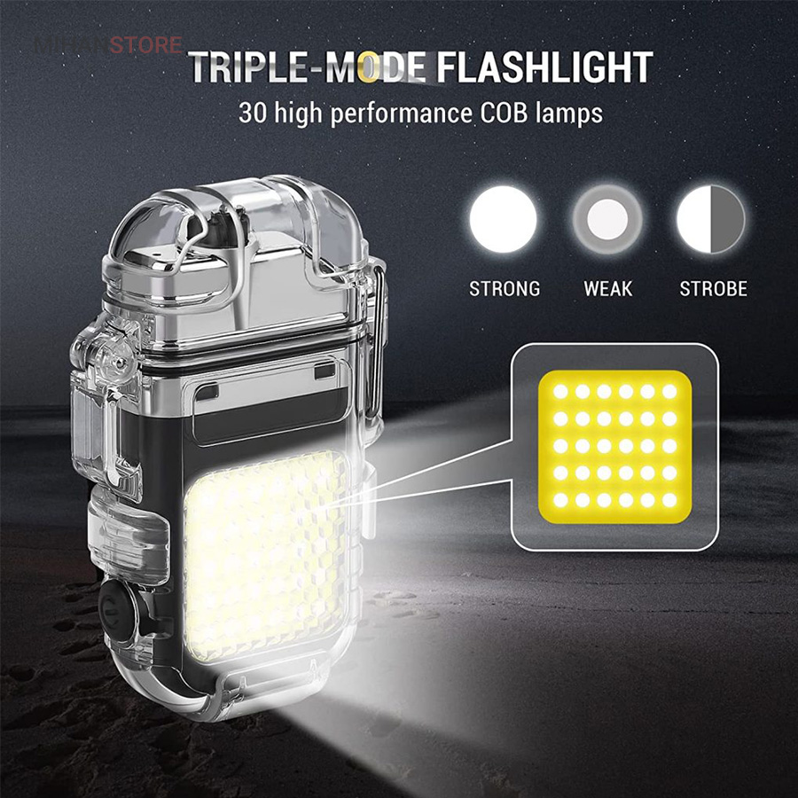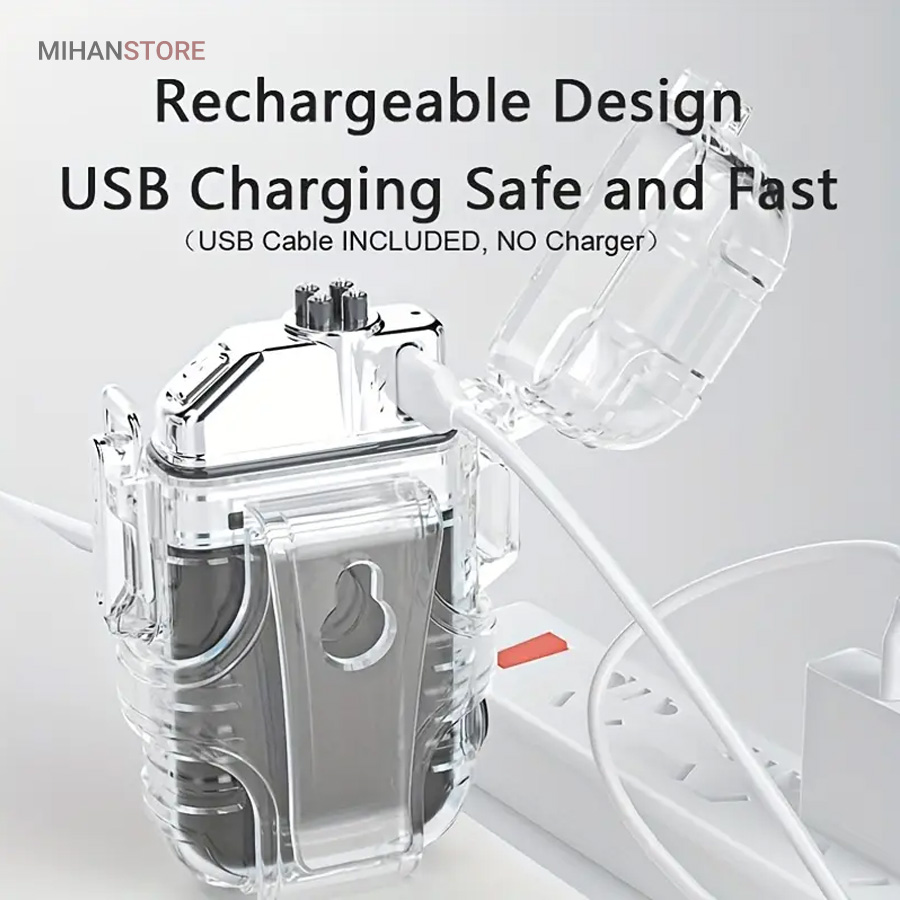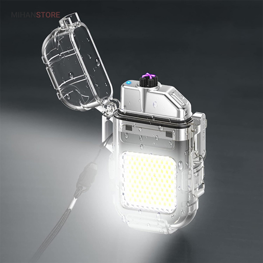 این مدل فندک بدون شعله است و نیازی به سوخت (گاز) ندارد. به همین خاطر استفاده از آن بسیار راحت است و کاربرد بیشتری نسبت به فندک معمولی دارد. در واقع منشا تولید حرارت در فندک پلاسما شبیه به قوس الکترونیک است؛ با حرارت پایین تر، که توانایی بالاتری در روشن کردن دارد و در هنگام وزش باد نیز قابل استفاده است و خاموش نمیشود. فندک الکتریکی (شارژی) چراغ قوه دار هدیه ای ارزنده و زیبا برای افرادی که دنبال محصولات لاکچری هستند. ویژگی منحصر به فرد این فندک ضدآب بودن آن است. یک پوشش پلاستیک محکم شفاف روی کل بدنه محصول قرار گرفته که نه تنها زیر باران، بلکه داخل آب (استخر، دریا و …) نیز قابل استفاده است. شما با خرید این محصول جذاب نه تنها صاحب یک فندک کاربردی خواهید شد بلکه یک چراغ قوه کوچک جیبی را نیز از آن خود خواهید کرد! روی بدنه این فندک یک چراغ COB سه حالته تعبیه شده که با دکمه پاور بغل آن روشن و خاموش میشود. (حالت نور کم، نور چشمک زن و نور زیاد)این فندک پلاسما یک فندک ضد آب و ضد باد است که می توانید در مواقع اضطراری به آن اعتماد کنید. روزهایی که باید نگران خشک نگه داشتن کبریت ها یا خاموش شدن شعله فندک های معمولی باشید، گذشته است. فندک الکتریکی (شارژی) چراغ قوه دار می تواند به طور مداوم قوس پلاسمای آتش را حفظ کند، حتی از حین بادهای 80 مایل در ساعت. با یک قاب بیرونی بادوام، مهر و موم حلقه فلزی و یک قفل، دیگر نگران ورود آب و خراب شدن این فندک قوس الکترونیک نخواهید بود. صرف نظر از اینکه از آن برای راهاندازی آتش در حیاط خلوت، کمپینگ یا چیزهای ضروری تر مانند شرایط بقا یا اضطراری استفاده می کنید، یک فندک قابل اعتماد خواهید داشت که می تواند در حال حرکت نیز شارژ شود.