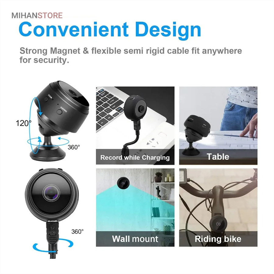 دوربین شارژی A9 یک دستگاه فوقالعاده کوچک و قابل حمل است که قابلیتهای بسیاری را در خود جای داده است. این دوربین به شما اجازه میدهد تصاویر و ویدئوهای با کیفیت را به صورت آنلاین و بیسیم از هر نقطهای در جهان دریافت کنید. با اتصال دوربین به شبکه وایفای محلی یا ایجاد ارتباط اینترنتی، شما میتوانید به راحتی از طریق نرمافزار مربوطه بر روی تلفن همراه خود تصاویر را مشاهده کنید و کنترل کاملی بر روی دوربین داشته باشید.این دوربین مداربسته کوچک، به لطف باتری داخلی قدرتمند خود، قابلیت کارکرد مستقل را دارد. با یک بار شارژ کردن، معمولاً میتوانید حدود نیم ساعت از آن استفاده کنید. اما اگر نیاز به ضبط ویدئوها و عکسها برای مدت زمان بیشتری داشتید، میتوانید از روشهای دیگری برای تغذیه دوربین استفاده کنید. به عنوان مثال، میتوانید دوربین را به یک پاوربانک متصل کنید تا طول عمر باتری را به طور قابل توجهی افزایش دهید. همچنین، با اتصال دوربین به یک شارژر مخصوص، میتوانید آن را به منبع برق متصل کرده و بدون نگرانی از زمان کارکرد دوربین، به طور پیوسته از آن استفاده کنید.با وجود اندازه کوچک، دوربین A9 دارای قابلیتهای فراوانی است. از جمله ویژگیهای مهم آن میتوان به کیفیت تصویر و ویدئو با وضوح بالا، قابلیت ضبط صدا، حسگر حرکت، حالت ضبط حرکتی، نورپردازی IR برای دید در شب، لنز گسترده برای زاویه دید بیشتر، قابلیت ضبط ویدئو با فرمتهای مختلف، و قابلیت اتصال به دستگاههای هوشمند از طریق نرمافزار مربوطه اشاره کرد.