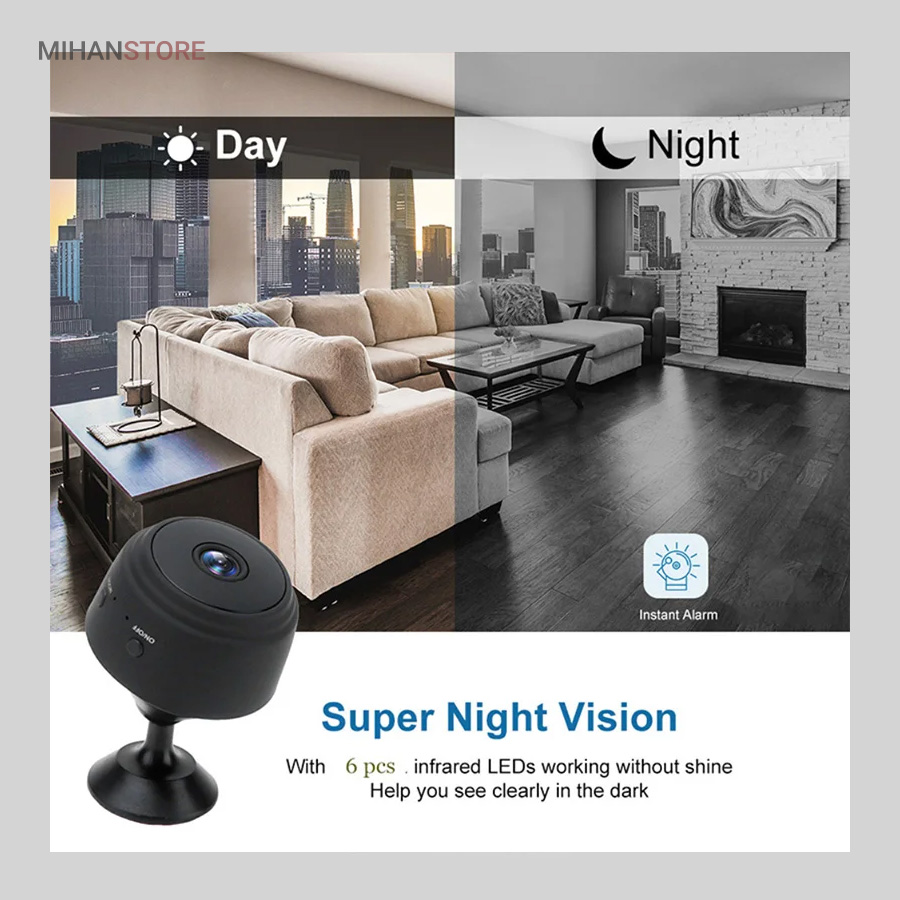 دوربین A9 دارای قابلیت تشخیص حرکت است که در صورتی که در محل نصب حرکتی رخ دهد، دوربین را فعال میکند. این ویژگی باعث میشود که فضای کارت حافظه میکرو SD کمتر مورد استفاده قرار گیرد. دوربین بیسیم کوچک A9 از کارت حافظه 64 گیگابایتی پشتیبانی میکند که به صورت مداوم تا 3 روز فیلمبرداری را ذخیره میکند. با فعال کردن گزینه تشخیص حرکت، ممکن است این زمان ذخیرهسازی افزایش یابد.دوربین کوچک رم خور A9 ، قابلیت دید در شب در تاریکی مطلق را تا فاصله 3 الی 5 متری دارد و میتواند تصاویر با وضوح بالا را در شرایط نور کم یا تاریکی نمایش دهد. با این حال، باید توجه داشت که دید در شب این دوربین مداربسته کوچک، نور قرمز رنگی ندارد و برای چشم بدون کمک وسایل نگهبانی، دیداری کاملاً نامشخص خواهد بود.