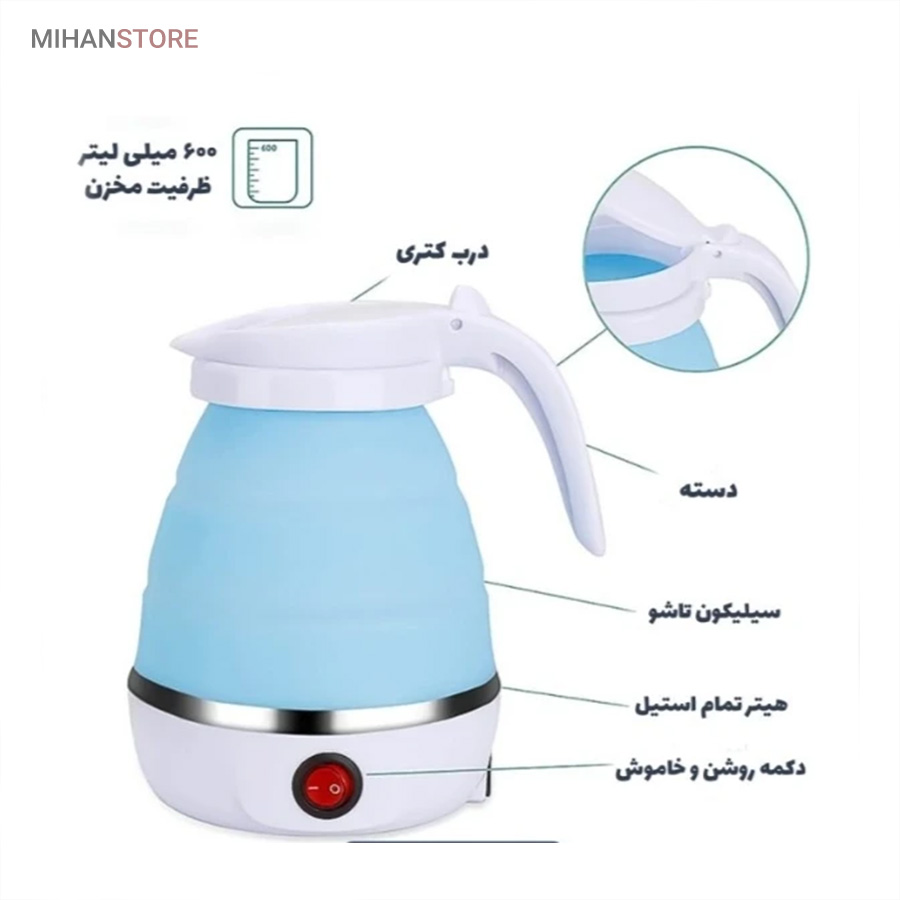 کتری برقی تاشو سیلیکونی با ویژگی‌ های جذابی مانند قفل کردن درب تک لمسی ، دستگیره‌ های طراحی شده ارگونومیک ، طراحی منحصر به فرد یک خرید عالی برای شما می باشد. کتری برقی تاشو مسافرتی یک محصول بسیار عالی و کارآمد برای کسانی ست که اغلب اوقات خود را در گردش و مسافرت هستند و دوست دارند بدون آنکه فضای زیادی از ماشینشان اشغال شود یک کتری مخصوص تهیه چای وآب جوش نیز همراه خود داشته باشند تا بتوانند در حین استراحت یک چای داغ دلنشین نیز نوش جان کنند.
