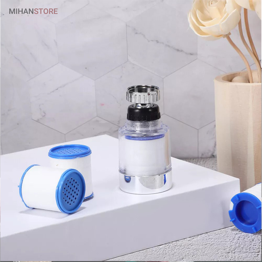 سرشیر تصفیه آب باعث میشود تا ذرات ریز آب فیلتر شود تا آبی تمیز تر نیز برای نوشیدن داشته باشید در اصطلاح باعث کاهش سختی آب میشود و بسیار مناسب استفاده برای نوشیدن شستشو و تبخ غذا میباشد، این محصول دارای دو فیلتر یدک که جمعا با فیلتر دستگاه 3 فیلتر برای شما ارسال میشود که میتوانید در صورت لزوم تعویض کنید.با قابلیت چرخش و مجهز به فیلتر، قادر است بطور کامل در تمام جهات بچرخد، تا به هر نقطه‌ای از سینک یا روشویی دسترسی پیدا کند و امکان شستشوی راحت را بدهد. این سر شیر آب، با استفاده از ترکیبی از مواد باکیفیت و پلاستیک ABS، عمر طولانی و دوام بی‌نظیری دارد. همچنین، فیلتر در آن، ناخالصی‌ها و سختی‌های آب شبکه را جدا کرده و خروجی آبی با کیفیت برتری را فراهم می‌کند.