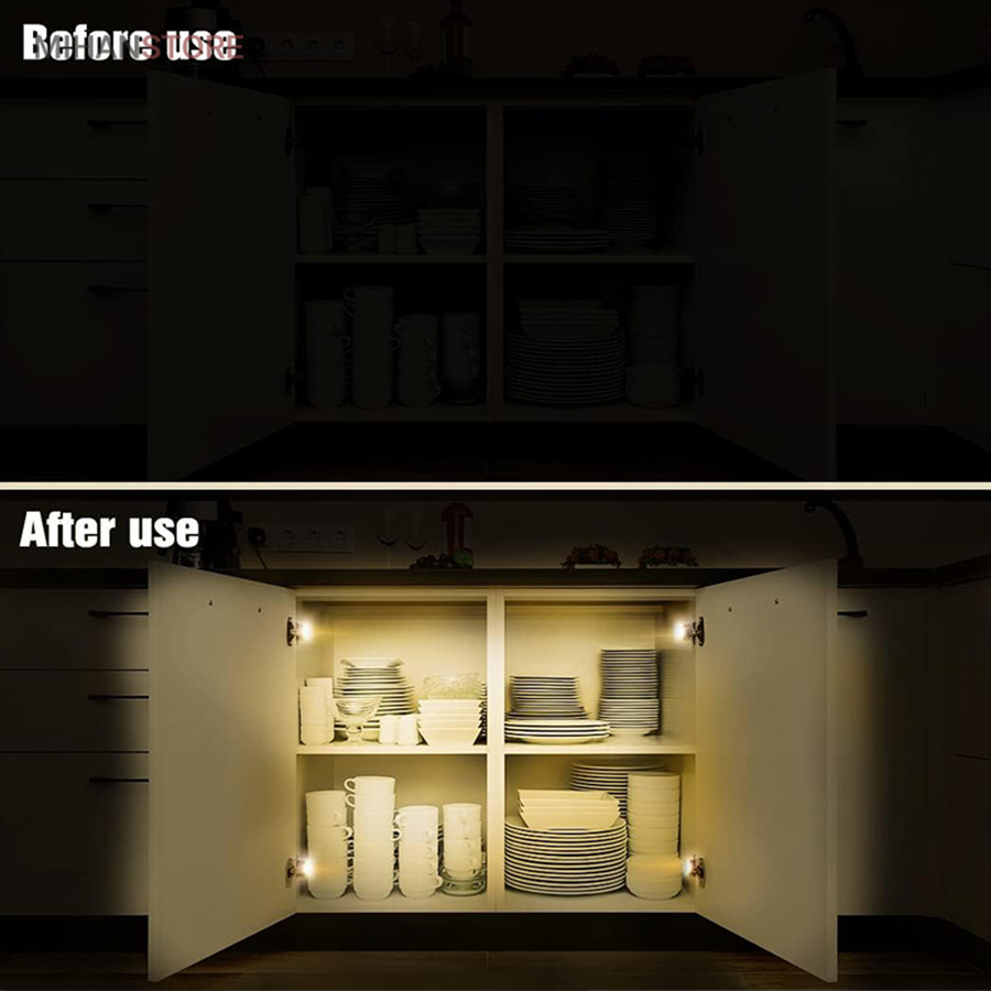 حتما شما هم در برخی مواقع که لازم بوده است از داخل کمد و یا کابینت منزل خود چیزی بردارید بخاطر تاریک بودن محیط داخلی کمد نتوانسته اید و لوازم داخل کمد را به هم ریخته اید. در حالی که اگر قسمت داخلی کمد نور کافی داشته باشد می توان براحتی وسیله مورد نظر را پیدا کرد و برداشت.یک محصول بسیار جالب و زیباست که میتواند به کابینت آشپزخانه شما جلوهای زیباتر و جذابتر دهد. لامپ داخل کابینت آشپزخانه به آسانی نصب میشود و میتوانید علاوه بر کابینت در انواع کمد نیز از آن استفاده کنید. این چراغ به سبب خاموش و روشن شدن خودکار و اتوماتیکی که دارد نیازمند تعویض باطری به طور مکرر نیست. این لامپ برای تامین انرژی موردنیاز از 1 عدد باطری استفاده میکند. لامپ داخل کابینت اشپزخانه از جنس پلاستیک است و دارای 3 عدد LED است. رنگ این لامپ سفید است و به لطف 3 عدد LED بسیار قوی که دارد میتواند فضای کابینت و وسایل آشپزخانه شما را روشن کند. در ادامه در رابطه با نصب چراغ داخل کابینت و نحوه کار لامپ داخل کابینت آشپزخانه صحبت خواهیم کرد و نحوه استفاده از لامپ داخل کابینت آشپزخانه را شرح خواهیم داد.
