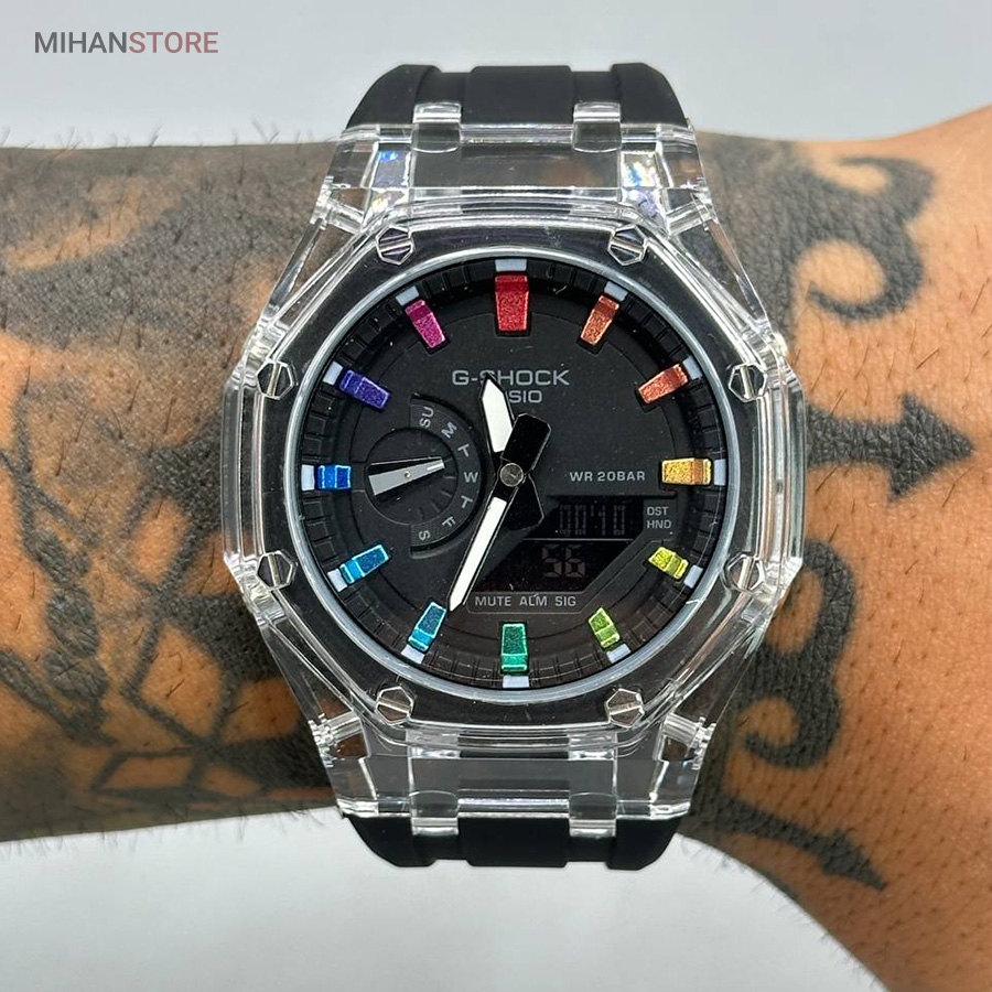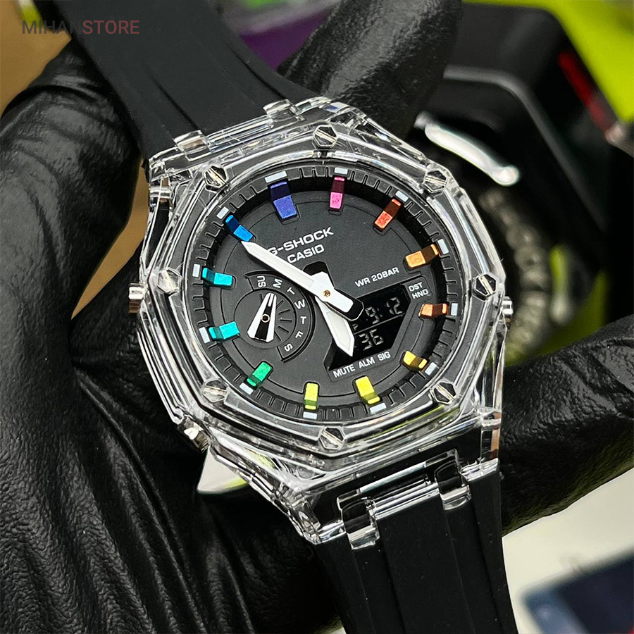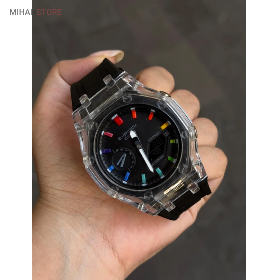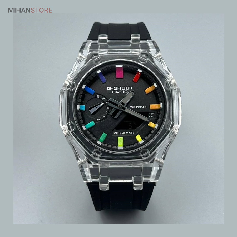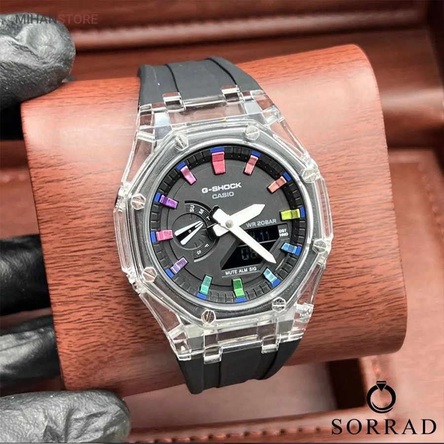 یکی از بهترین ساعت هایی که کمپانی کاسیو تولید میکند و از زمانی که ساعتهای کالکشن جی شاک به بازار معرفی شد ساعت جی شاک مدل GA2100 می باشد، کاسیو برای بار دیگر کاربران خود را به چالش کشید. مدل های جی شاک ، با ظاهر و طراحی مقاوم و منحصر به فرد خود، به محبوبیت بین المللی در بین جوانان رسید. ساعتهایی با قدرت ضربهپذیری بالا، مقاومت بالا در برابر آب و ضربات محکم که توانست نظر بسیاری از افراد را به خود جلب کند. ساعت مچی جی شاک دارای بند رابر مشکی خاص وموتور باکیفیت ژاپن وبدنه استیل وقاب شیشه ای جذاب است که بهترین انتخاب افراد خاص پسند می باشد.