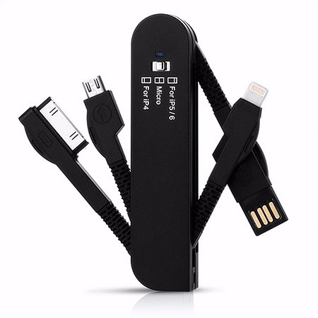 دستگاه USB همه کاره در واقع همان کابل اتصال موبایل شما به USB کامپیوتر است که دارای طراحی جدید و بسیار شکیل می باشد که شما می توانید آن را همیشه همراه خود داشته باشید و در مواقع نیاز از آن استفاده نمایید. از این وسیله می توانید جهت انتقال دیتا و یا شارژ گوشی موبایل (با استفاده از کامپیوتر و یا پاور بانک و یا برق خانگی) استفاده نمایید. از ویژگی های این دستگاه دارا بودن 3 فیش مخصوص گوشی ها و تبلت های اندروید، آیفون (سری قدیمی و جدید) و آیپد می باشد، یعنی با یک دستگاه شما می توانید انواع موبایل ها و تبلت ها را توسط USB به کامپیوتر وصل کرده و موبایل یا تبلت خود را شارژ کنید و یا فایل های کامپیوتر و موبایل را جا به جا کنید. از ویژگی های دیگر این دستگاه سبک بودن و قابلیت حمل آسان است. دستگاه USB همه کاره در رنگ های مشکی، سفید، آبی و قرمز عرضه شده است که شما هنگام تکمیل فرم سفارش می توانید رنگ مورد نظر خود را انتخاب کنید. از ویژگی های این محصول می توان به قدرت سریع انتقال اطلاعات و ثابت